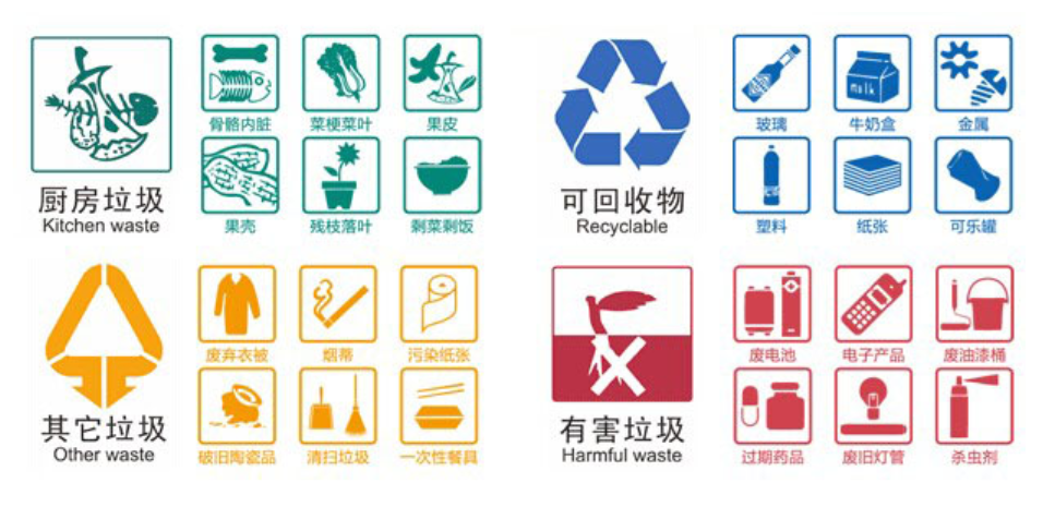 (一)可回收垃圾:主要包括廢紙、塑料、玻璃、金屬和布料五大類。