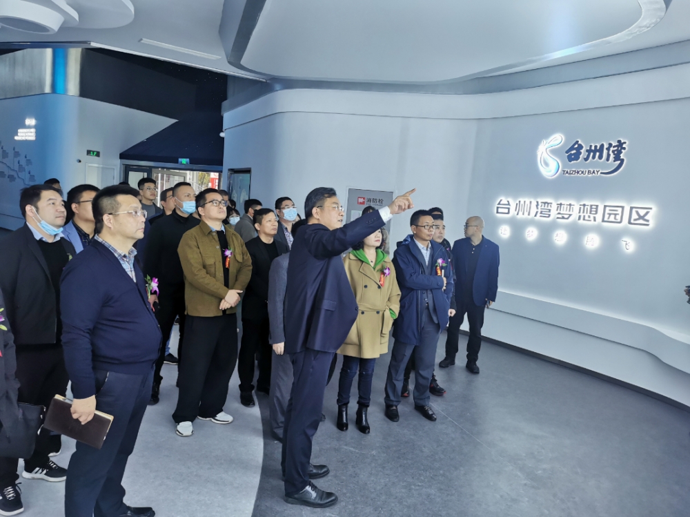 會(huì)前,郭健跳帶各位招商顧問參觀了新落成的臺州夢想加速園區(qū)展廳,介紹了新區(qū)近幾年取得的成績。